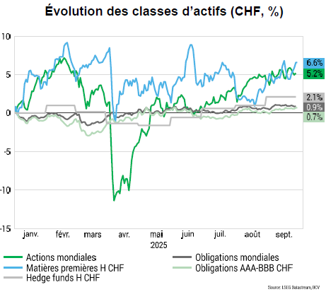 Durant la première moitié de 2025, une rotation marquée s’est opérée entre classes d’actifs et styles d’investissement : les actions internationales, notamment européennes, émergentes et asiatiques, ont surpassé les actions américaines. L’or reste la meilleure performance de l’année, tandis que les actions « Value » et les obligations des marchés émergents ont également fait mieux que les actions de croissance et les obligations américaines.